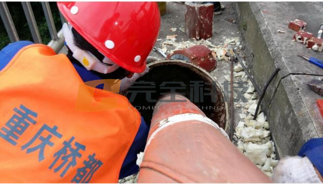 圖2、貴州紅楓湖特大橋現場照片2(清理導管口內發泡膠)