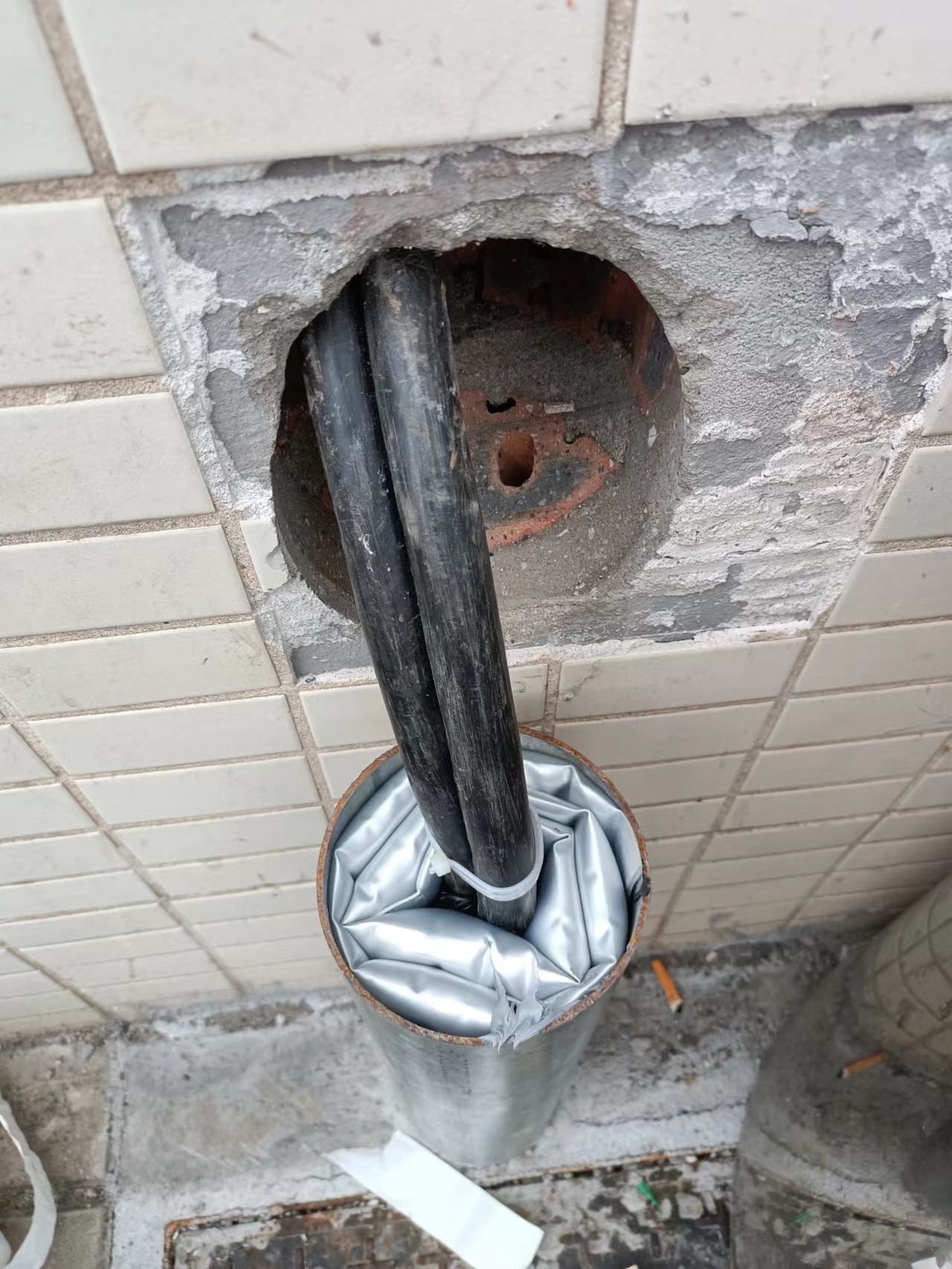 穿墻水管孔防水封堵效果(φ100)