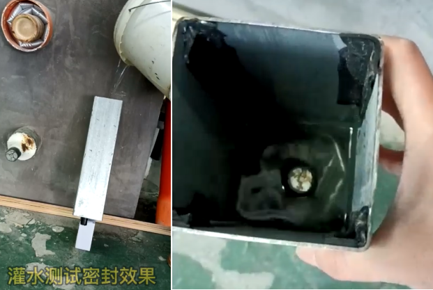 方形管道孔洞封堵效果灌水檢驗結果:將管道樹立灌水,管道底部未見漏水,密封有效。