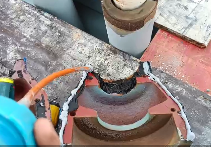 傳統拉索錨具防腐方式主要是采用:頂部裝防雨罩+索導管口用聚氨酯發泡劑密封+索導管底部灌注防腐油脂。但經過這么多年的實踐顯示,該方式存在一定的不足和問題。首先,在材料性能方面:防雨罩受橋梁拉索頻繁震動和防雨罩結合部位的密封材料本身存在老化問題,容易出現裂縫而導致雨水滲入;聚氨酯發泡劑同樣處于橋梁拉索頻繁振動下,材料與拉索結合部位容易出現裂縫,無法起到防水密封的效果;索導管內部灌注防腐油脂,也會因為高溫導致防腐油脂溶解稀釋喪失防腐性能。再就是從整個施工工藝方面看,灌注防腐油脂和發泡劑,材料成本不小,灌注過程費時費力,對現場環境也有影響。后續養護施工需要清空索導管再重新灌注材料,更是麻煩。