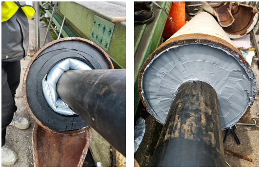 采用充氣密封技術,如充氣型斜拉索導管密封系統。即在防雨罩下方的索導管口安裝充氣型斜拉索導管密封系統,形成第二層防水屏障,使得雨水無法深入索導管內部。充氣型斜拉索導管密封系統設計多層密封結構,包括內密封、中間密封和外密封,以多重防護確保水汽無法滲透。
