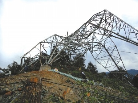 輸電鐵塔攔腰折斷