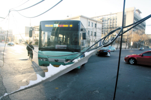 元月4日,天津市河東區七緯路與十經路交口架在空中的電纜突然脫落,擋在了繁華的路口,給附近的交通造成不小麻煩! ∽蛱烨宄,天津市河東區七緯路與十經路交口,幾根電纜從電線桿上脫落,下墜到距離地面僅有一米多高,擋住了車輛的去路。正是假期行車的高峰時間,公交車、班車均無法正常通行。交警趕到現場后,對交通進行了疏導,隨后,電力部門也對脫落的電纜進行了重新安裝,但因為某些產權單位沒有及時趕到現場,直到記者中午離開現場時,有幾根電纜仍一直沒能修復。